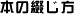 | スピン…………………… | しおり、リボンともいい、本の中に折り込まれるひも状のもの。 |